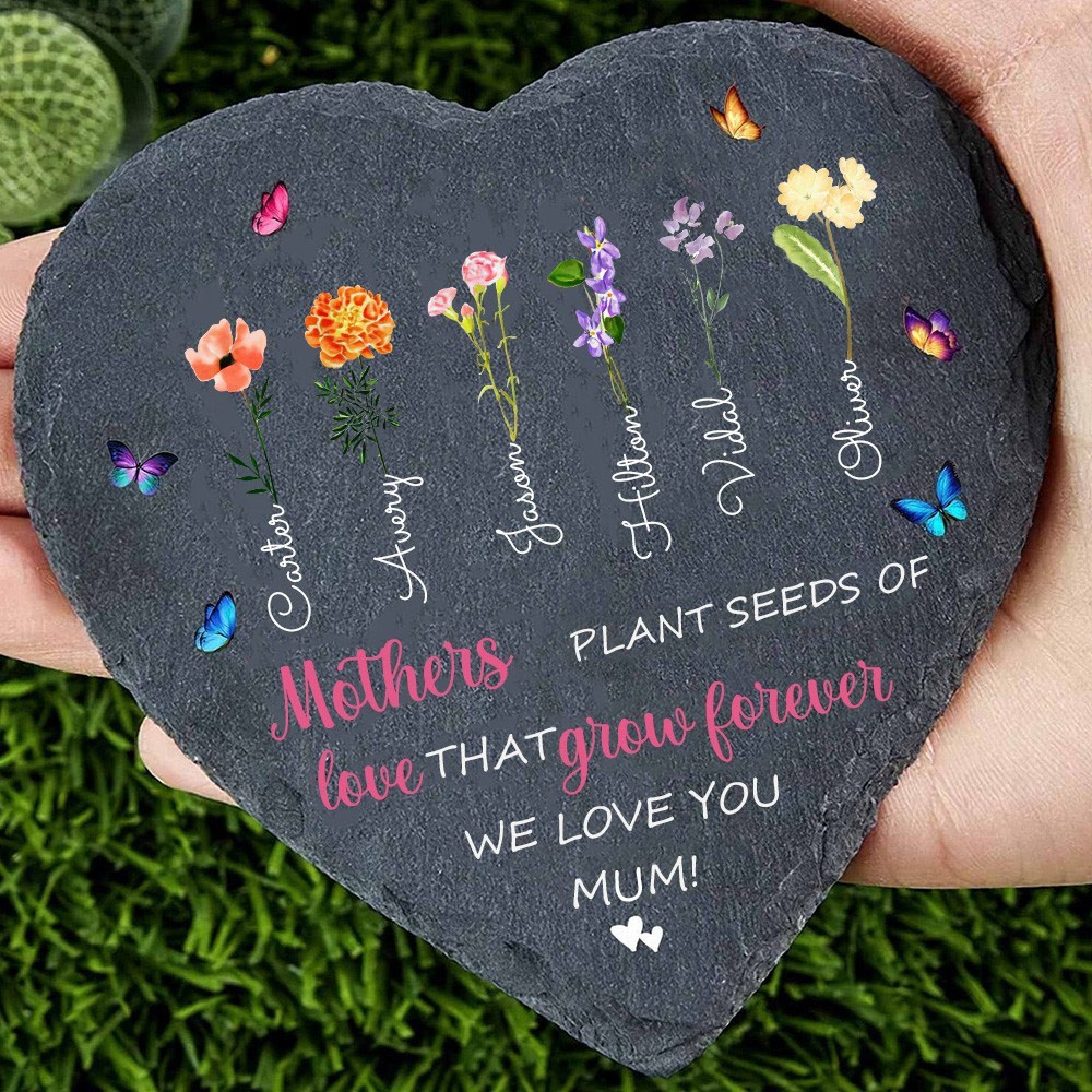 Personalised Black Birth Flower Heart Shape Plaque For Grandma,Mum