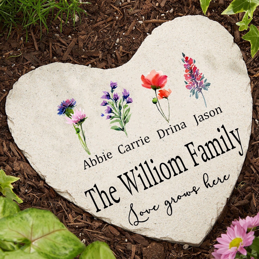 Personalised Birth Flower Heart Shape Plaque For Grandma,Mum
