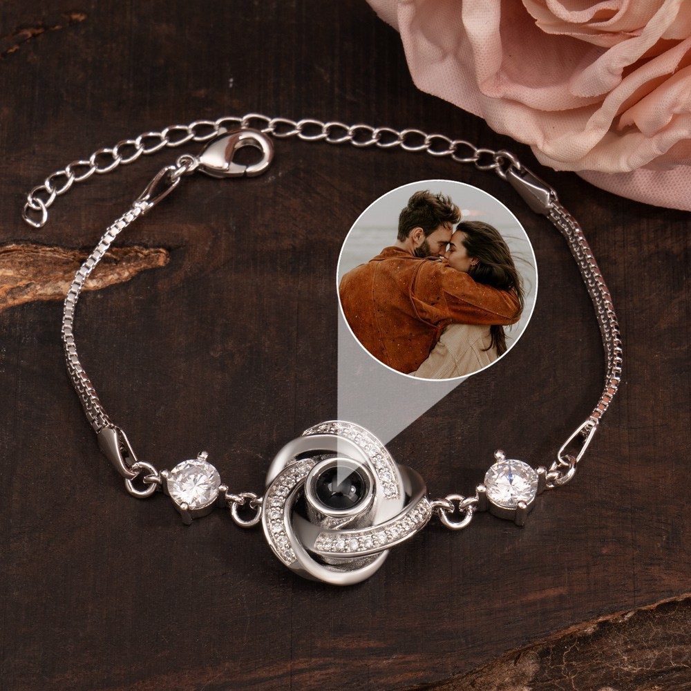 Personalised Geometric Pattern Photo Projection Bracelet with Picture Inside Unique Gift For Mum Couple