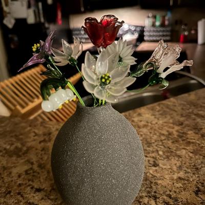 This personalised hand-blown glass birth flower features a custom floral stem, crafted as a unique piece of fine art glass and standing approximately 20cm tall. Each flower is carefully shaped with elegant details and vibrant color, creating a timeless bloom that never fades. A meaningful Valentine’s Day or Mother’s Day gift for your wife, mum, or grandma, celebrating love, family, and cherished moments in a beautiful way.