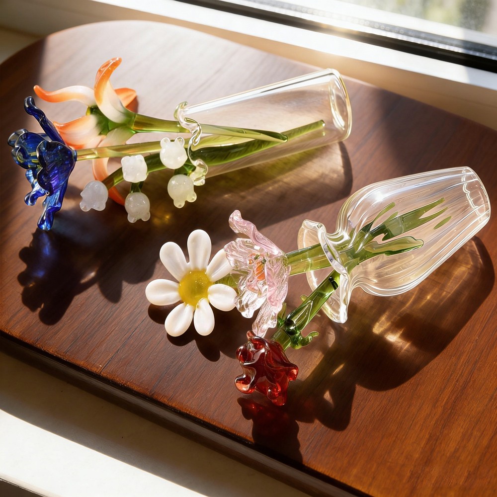 Personalised Glass Birth Month Flower Custom Mini Glass Flower Bouquet Unique Birthday Gift For Mum Grandma Mother's Day Keepsake