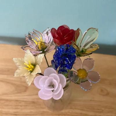 Absolutely beautiful glass flowers! The craftsmanship is stunning, and they look even better in person. They arrived well-packaged and in perfect condition.