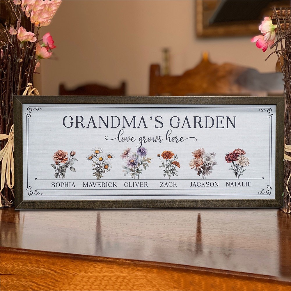 Personalised Grandma's Garden Birth Flower Frame Sign with Grandkids Names Unique Gifts for Grandma Mum Mother's Day Gift