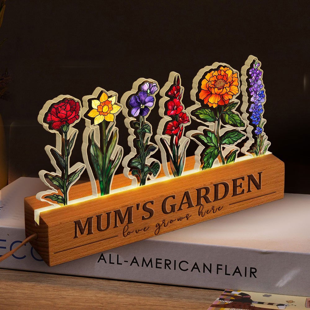 Personalised Grandma's Garden Birth Flower Night Light with Grandkids Names Unique Gifts for Grandma Mum Mother's Day Gift