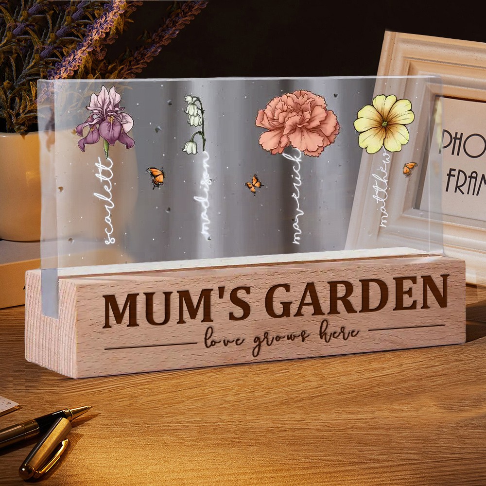 Personalised Grandma's Garden Love Grows Here Birth Flower Night Light Christmas Gifts Unique Gifts For Mum Grandma