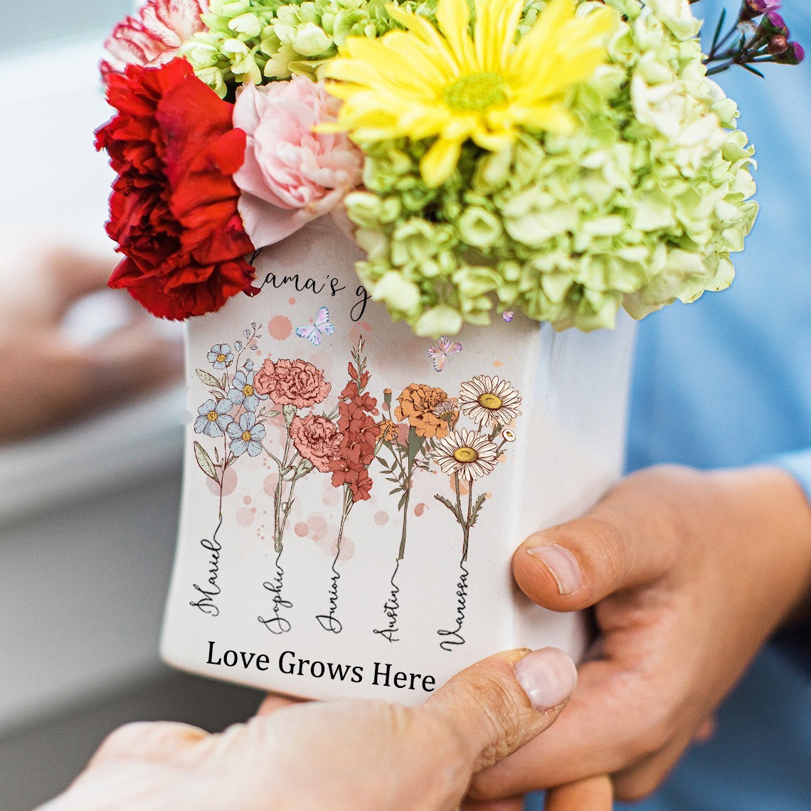 Personalised Grandma's Garden Love Grows Here Birth Flower Vase with Grandkids Names Gifts for Grandma Mum Mother's Day Gift