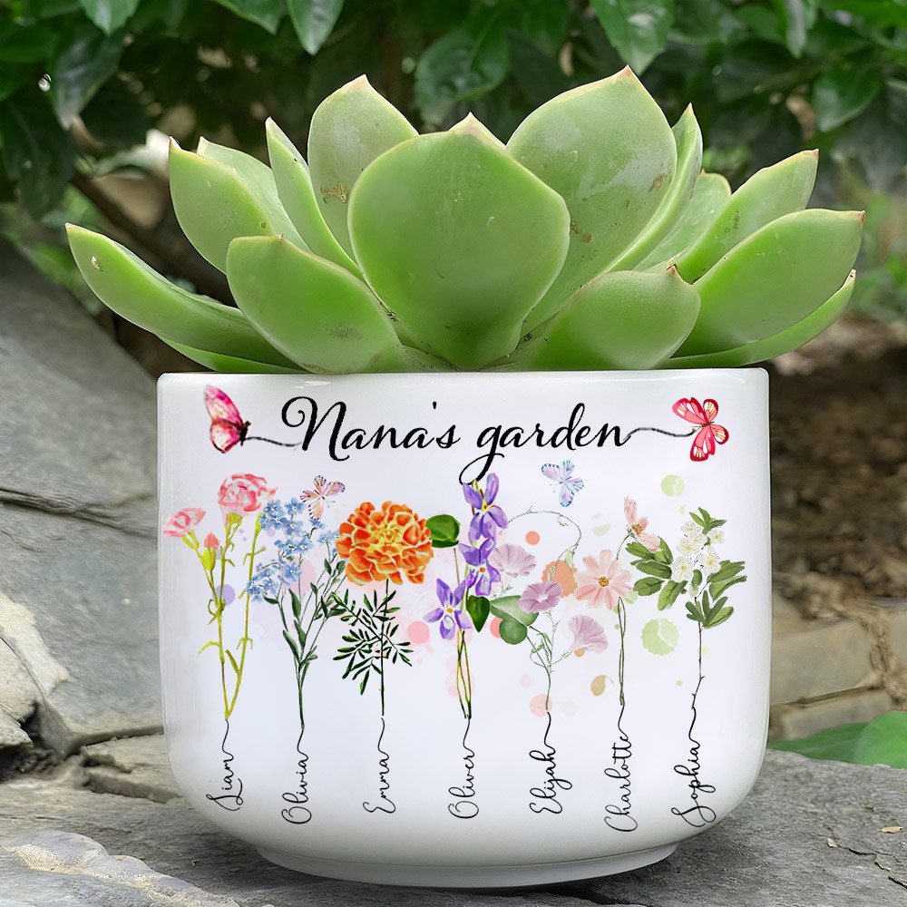 Personalised Grandma's Garden Succulent Plant Pot With Birth Flower Mother's Day Gift Ideas Gifts for Grandma Mum