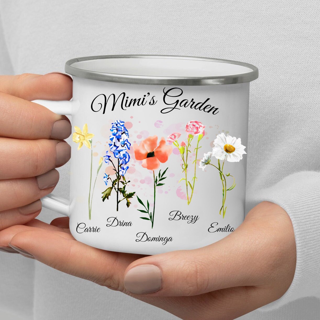 Personalised Grandma's Birth Flower Camping Mug with Kids Names