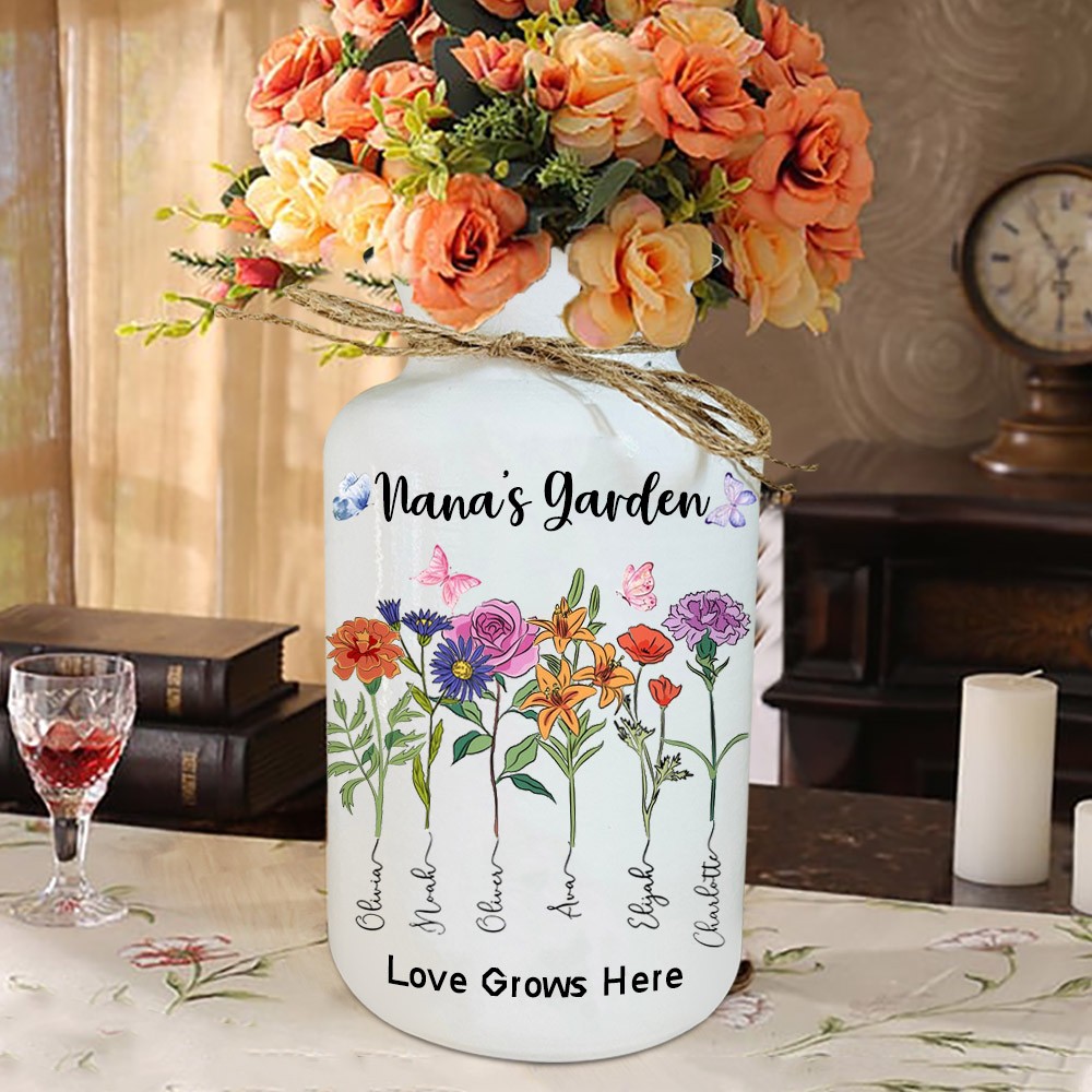 Personalised Grandma's Garden Birth Flower Vase with Kids Names Mother's Day Gift