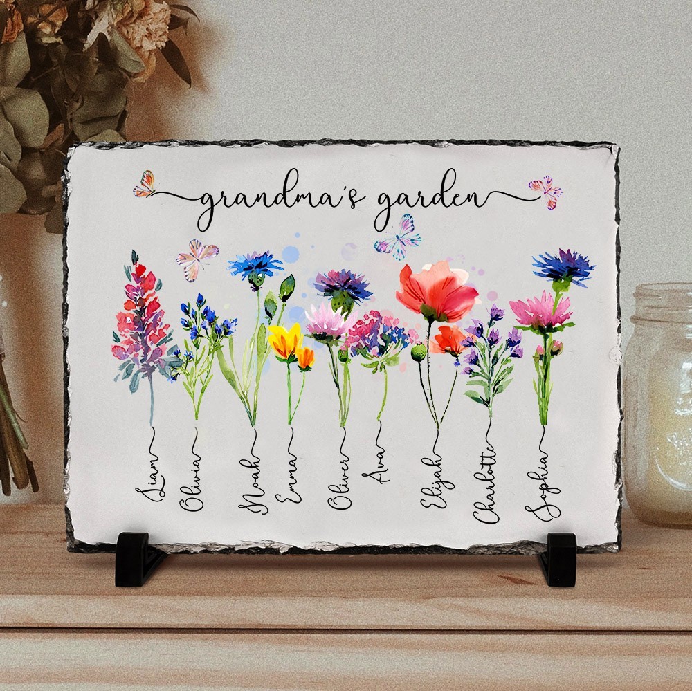 Personalised Birth Flower Print Art Decorative Plaque for Mum, Grandma