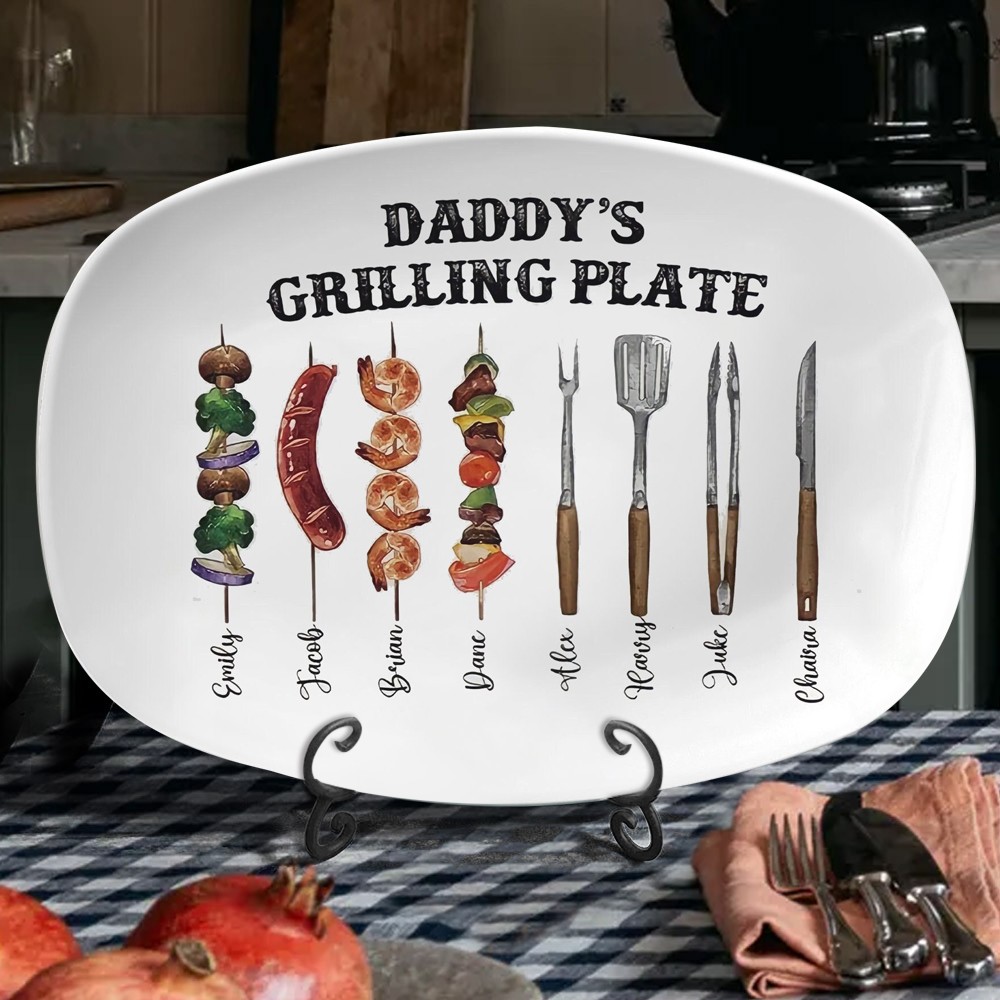 Personalised Grilling Plate with Kids Names for Dad Father's Day Gift