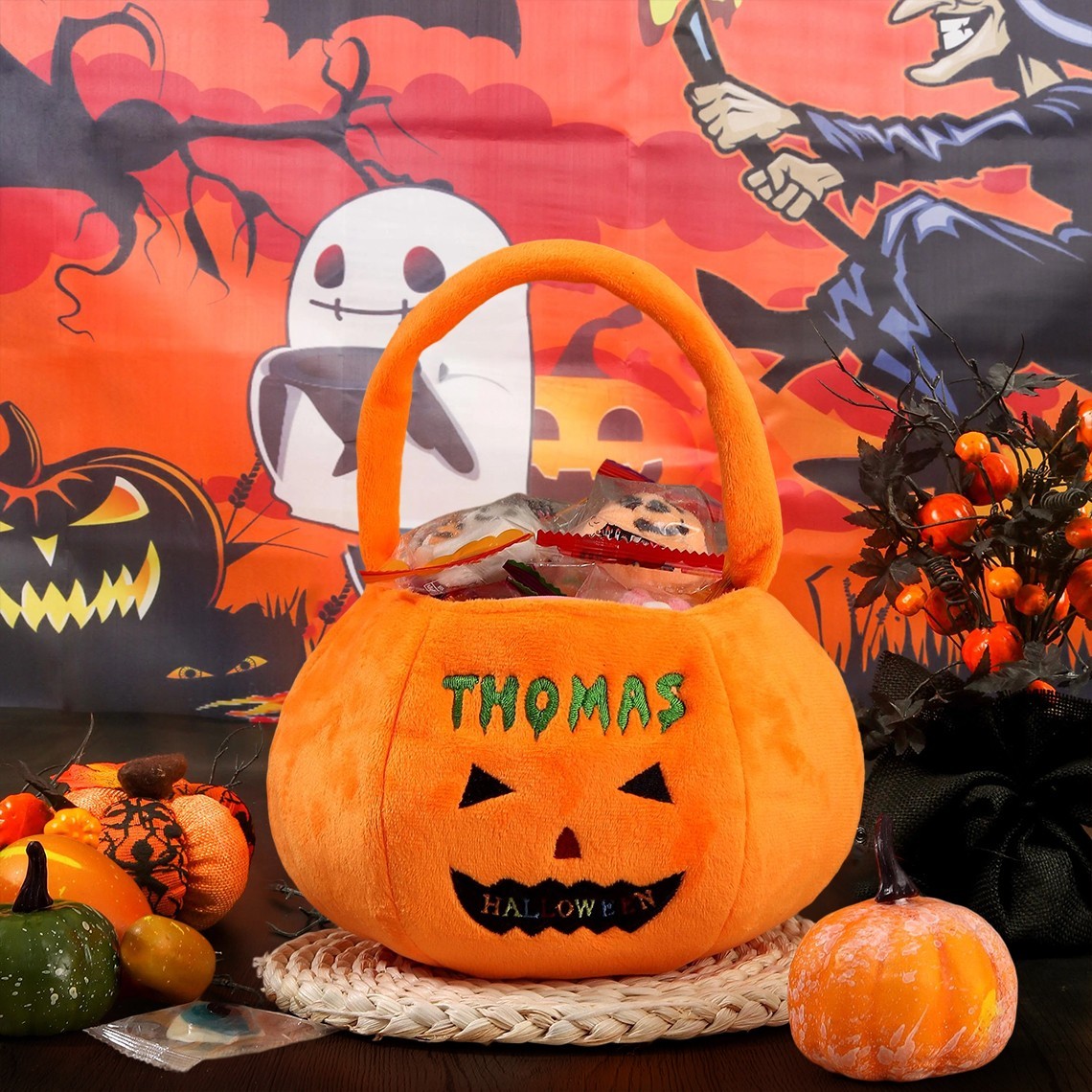 Personalised Halloween Pumpkin Bucket with Embroidered Name Trick or Treat Bag Halloween Gift for Kids