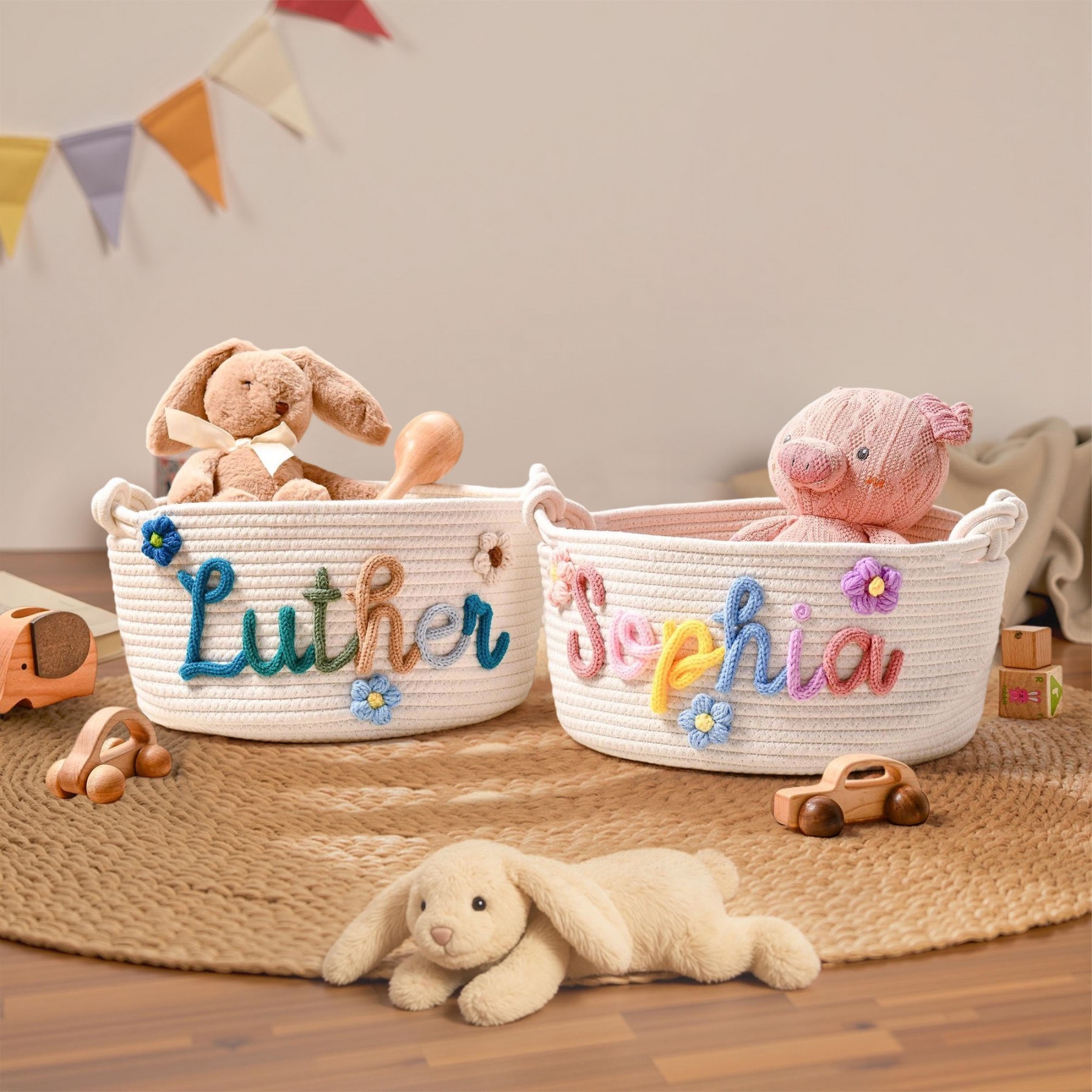 Personalised Handmade Baby Basket with Name Toys Storage Basket Baby Shower Gift Newborn Gift