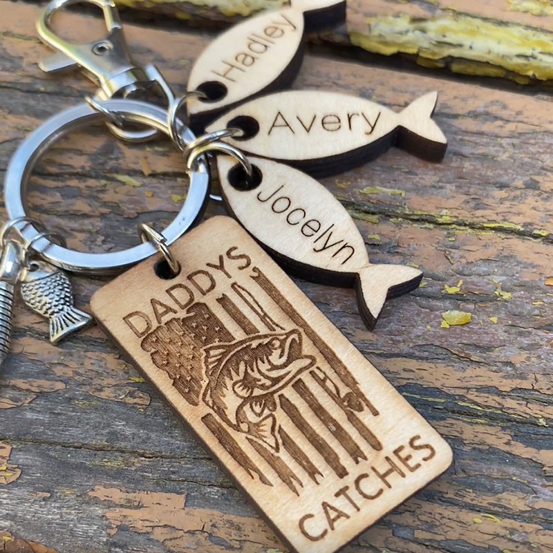 Personalised Handmade Fishing Keychain We're Hooked on Daddy Father's Day Gift