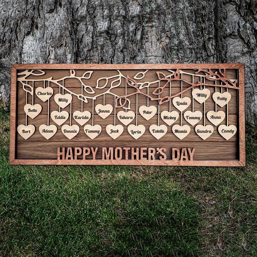 Personalised Hanging Hearts Wooden Family Tree Name Sign Christmas Gift for Mum Grandma Family Keepsake Gifts