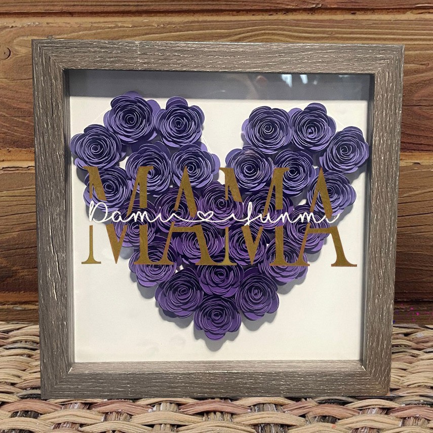 Personalised Heart Flower Shadow Box with Names for Mum,Grandma