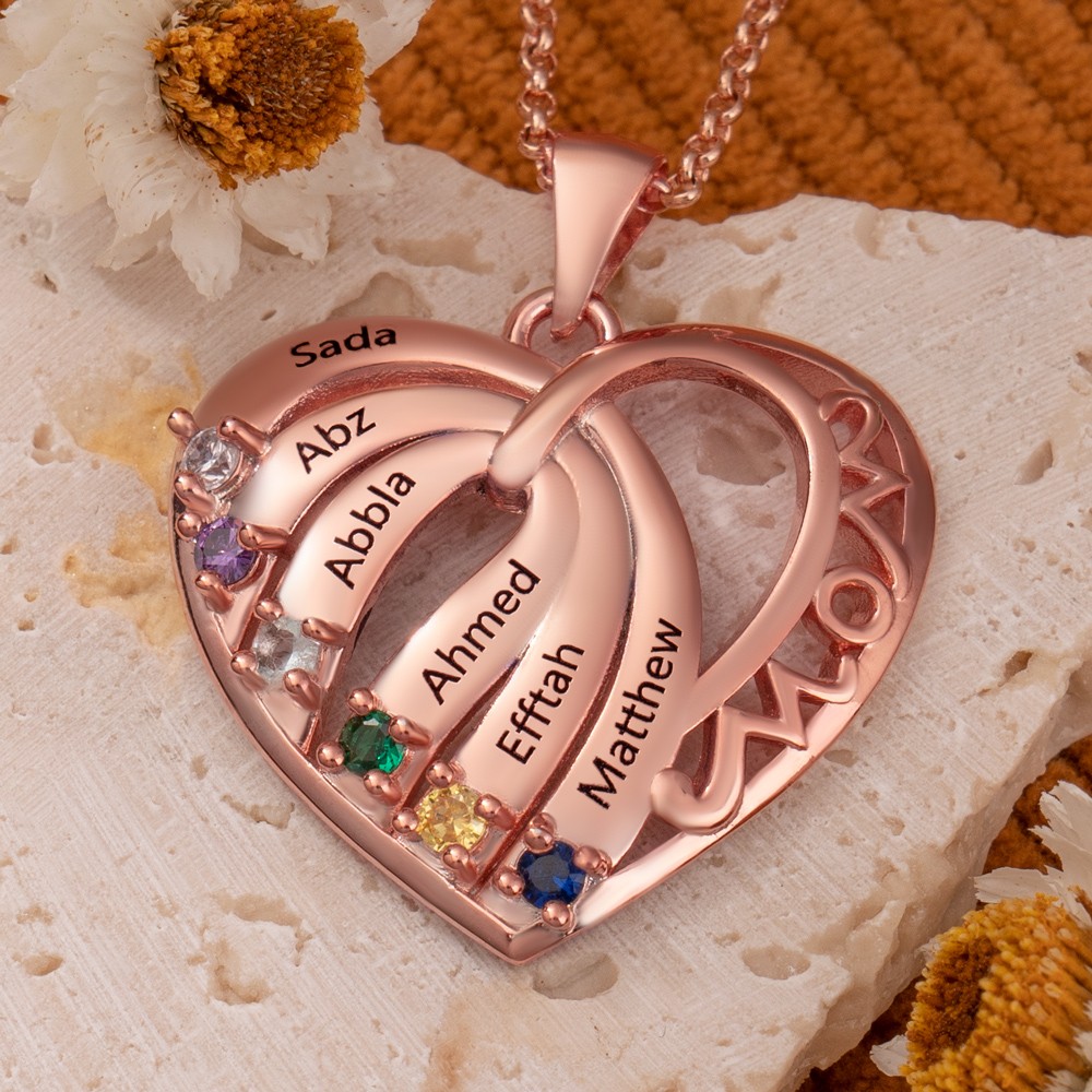 Personalised Heart Shaped Birthstones Necklace With Kids Names Keepsake Gift for Mum Grandma New Mum Gift Ideas