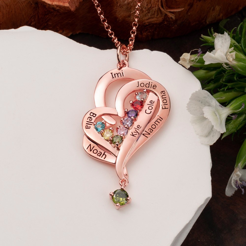 Personalised Heart Shaped Engraved Name Necklace With Birthstone Mother's Day Gift Ideas Family Keepsake Gifts