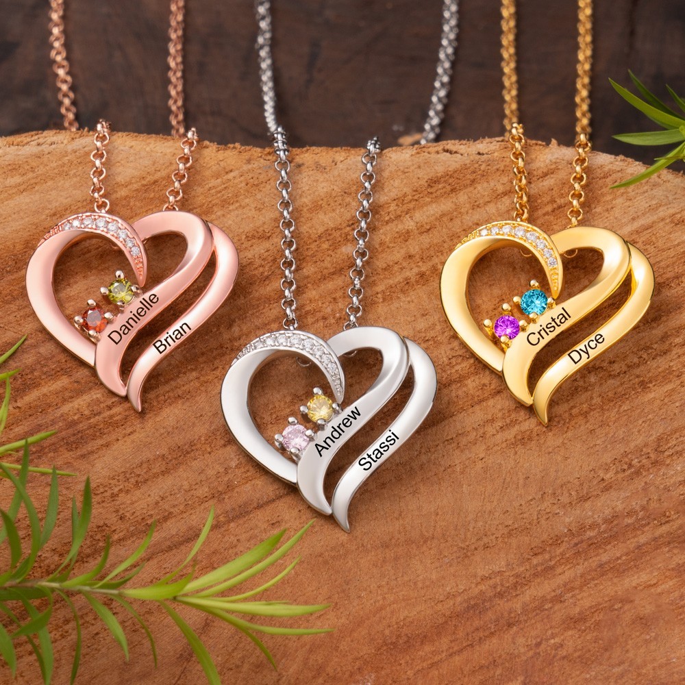 Personalised Heart Shaped Engraved Names Birthstones Necklace Anniversary Gift Ideas Gifts For Girlfriend Couple