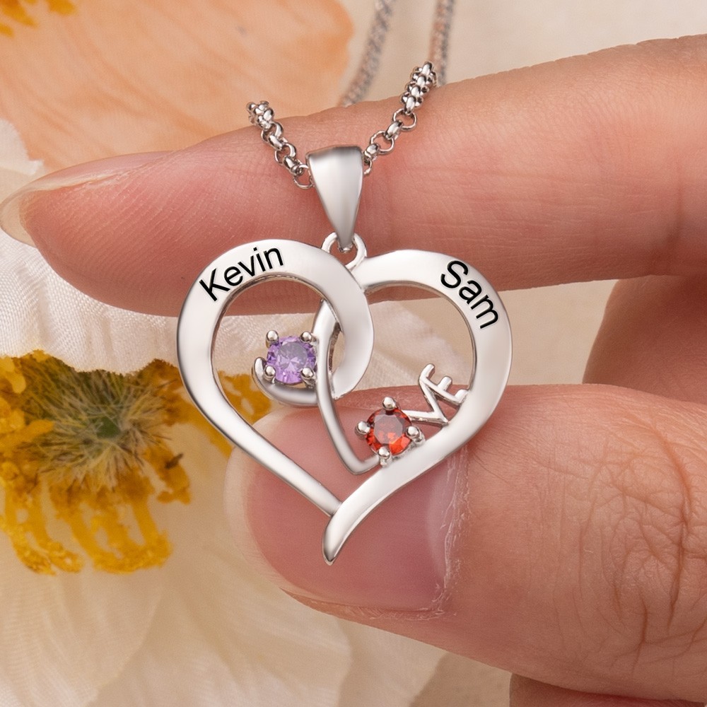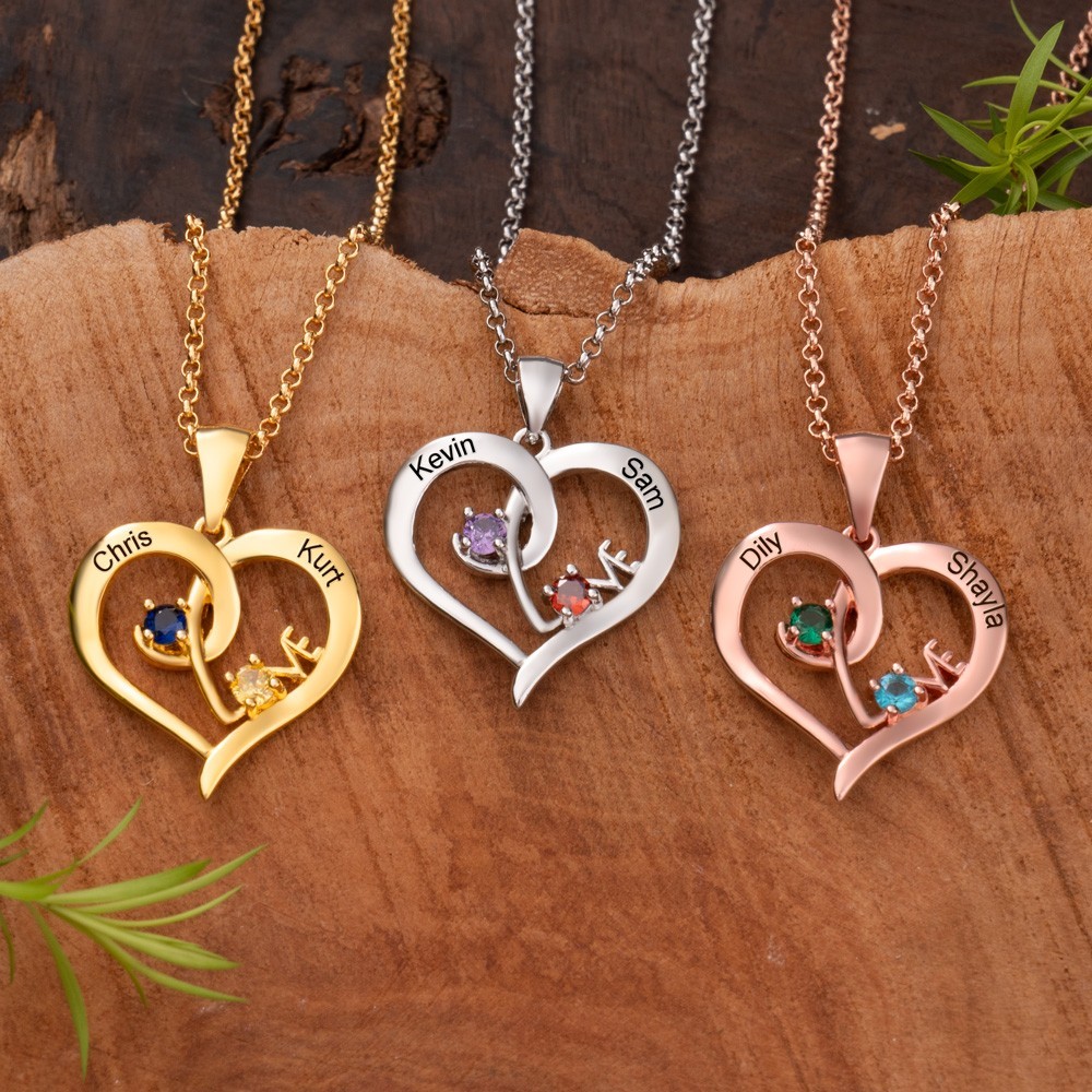 Personalised Heart Shaped Engraved Names Necklace with Birthstones Meaningful Anniversary Gift Ideas Unique Gifts For Her