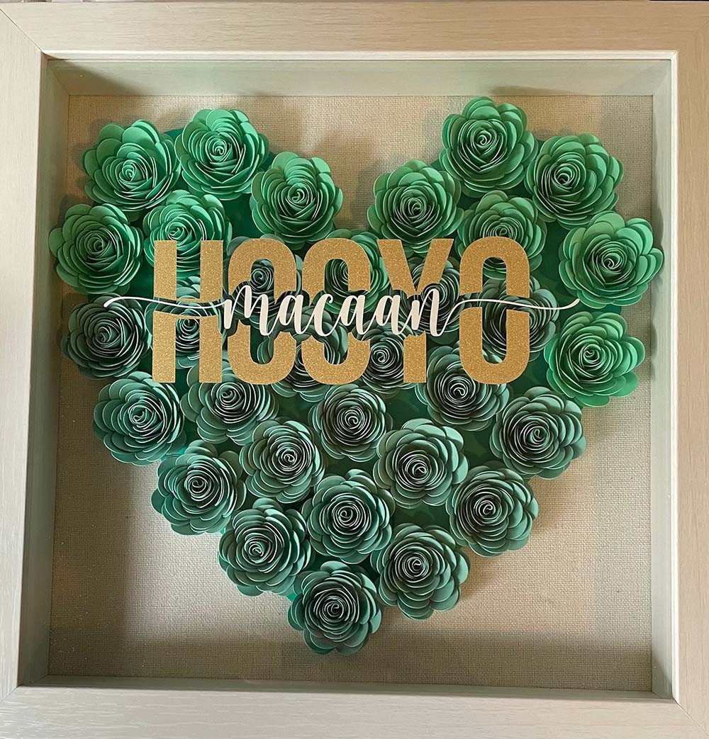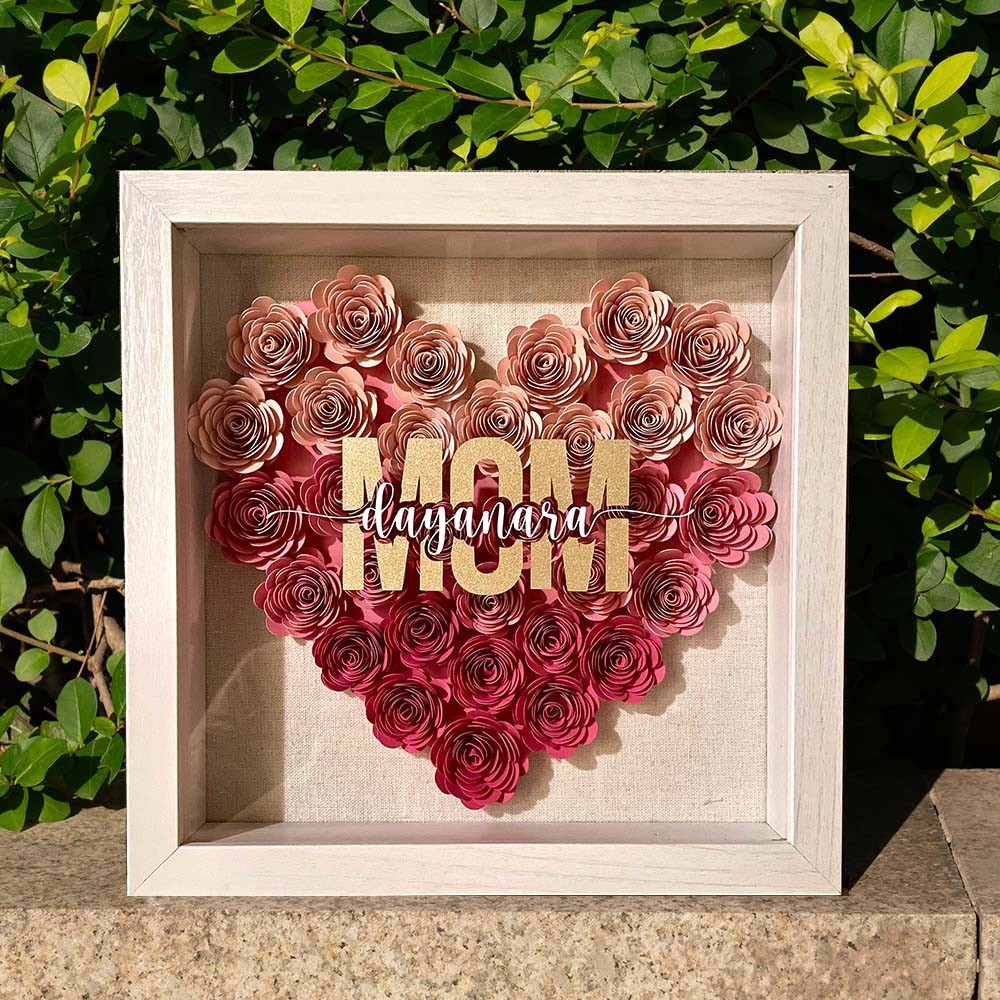 Personalised Heart shaped Flower Shadow Box with Names