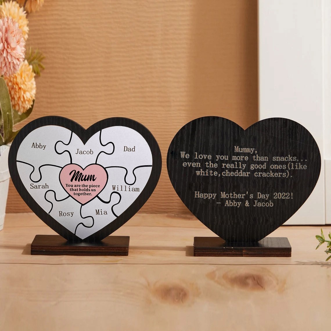 Personalised Heart Shaped Mum Puzzle Name Sign Gift Ideas for Mum Mother's Day Gifts