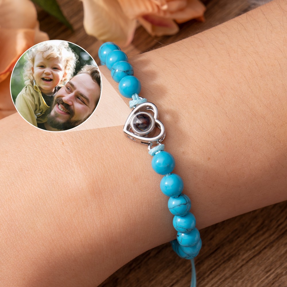 Personalised Heart Shaped Photo Projection Beaded Bracelet with Picture Inside Keepsake Gifts For Couple