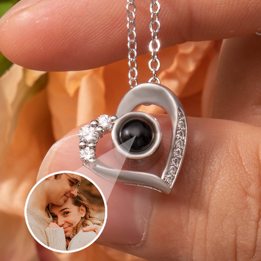 Personalised Heart Shaped Photo Projection Necklace With Picture Inside Love Gift For Couple Unique Gift For Her