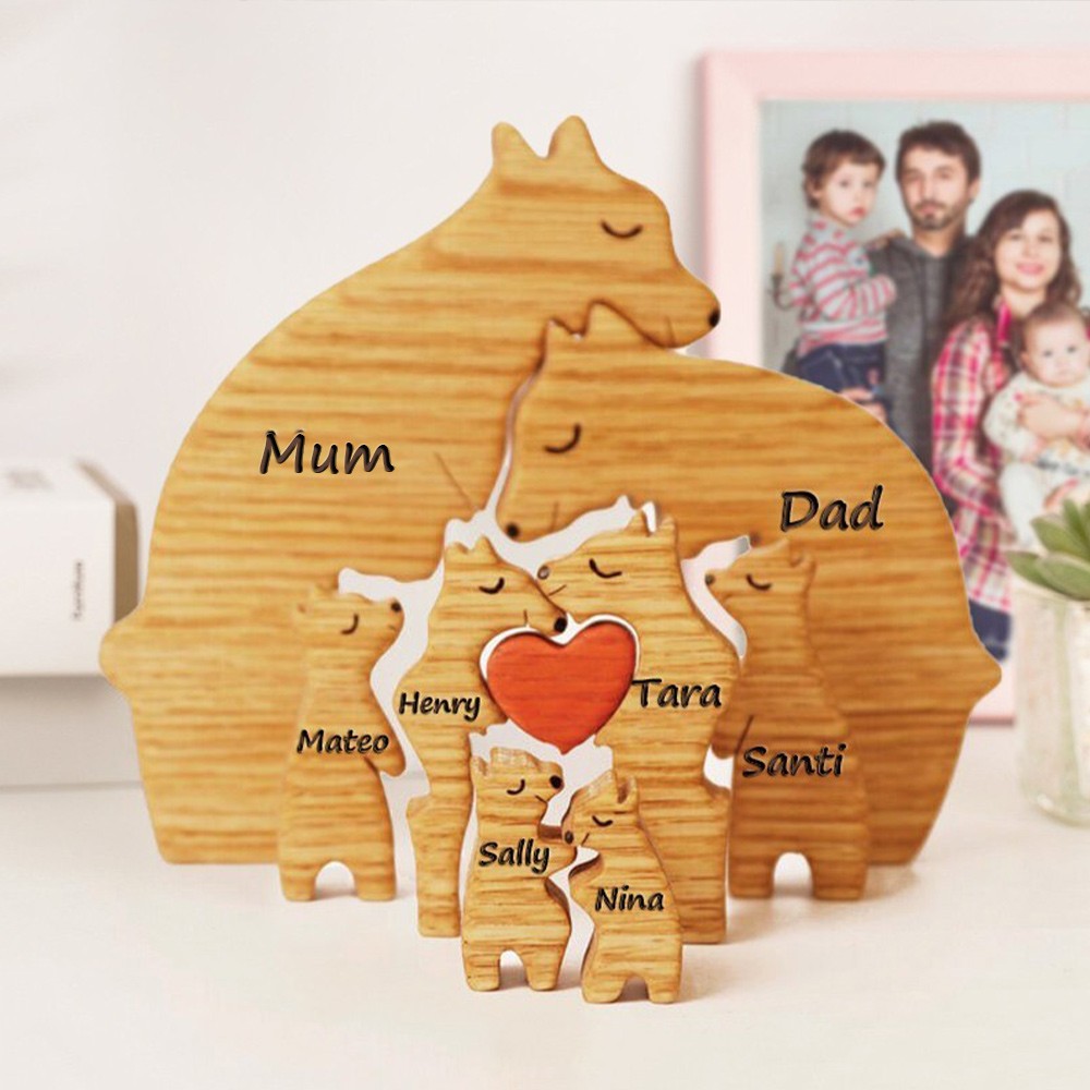 Personalised Hugging Bear Wooden Family Puzzle with Names