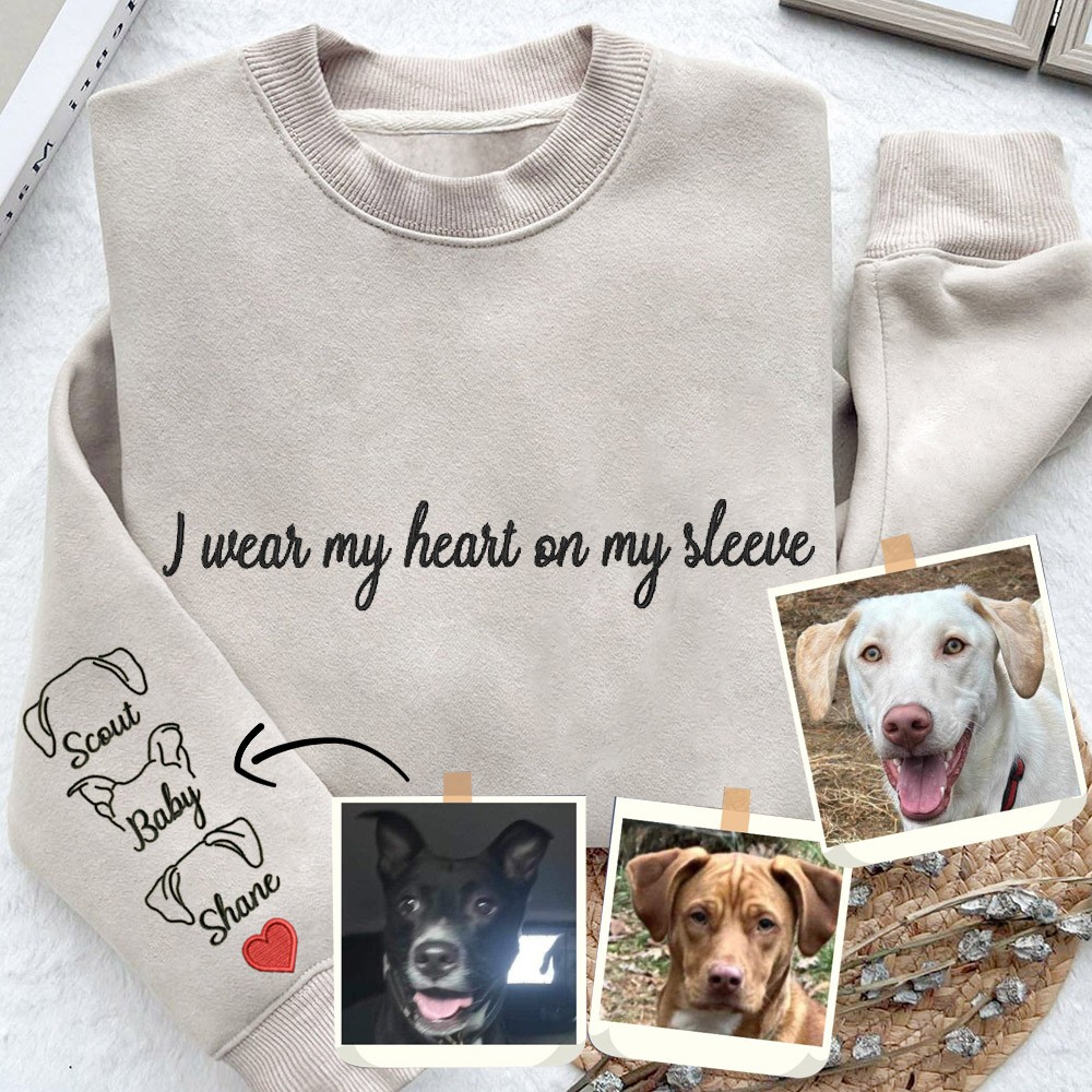 Personalised I Wear My Heart on My Sleeve Embroidered Pet Ears Sweatshirt Hoodie Gifts for Cat Lover