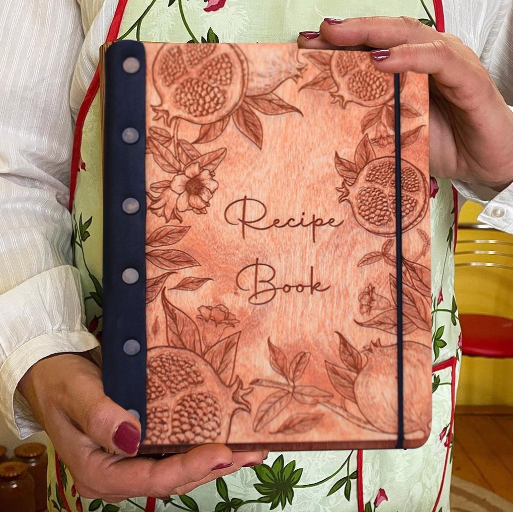 Personalised Leather Bound Journal Recipe Book Binder Custom Wooden Engraved Cookbook Christmas for Mum Family