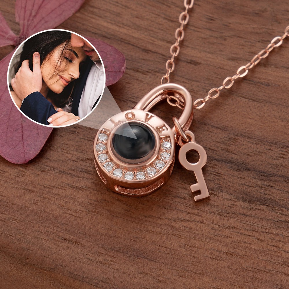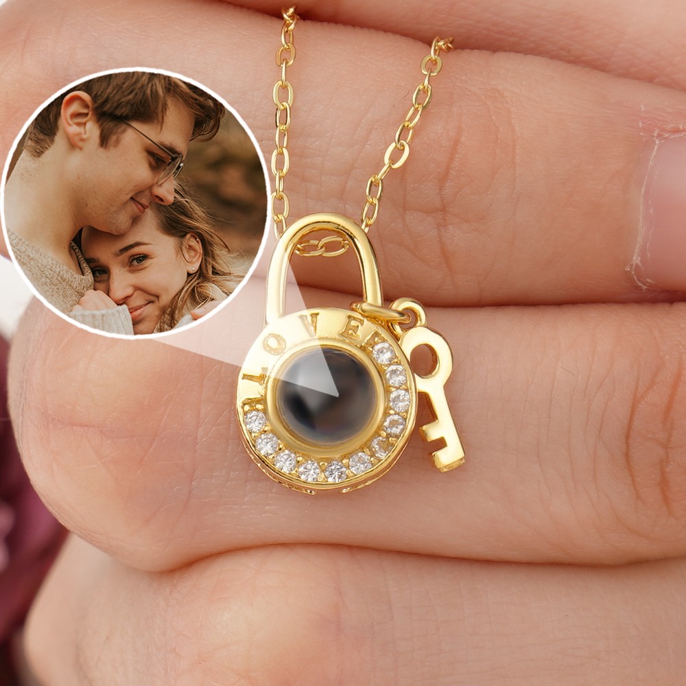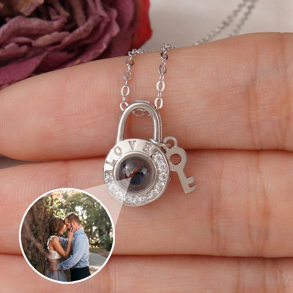 Personalised Lock Key LOVE Pendant Photo Projection Necklace Unique Gifts For Couple Anniversary Gift For Her