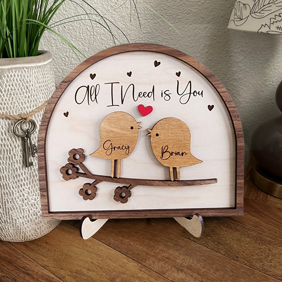 Personalised Love Birds Couple Wooden Sign with Names Anniversary Gifts Unique Christmas Gift for Her Him
