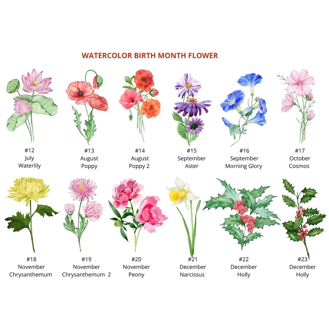 -- Select 12th Flower Type -- January-Carnation January-Snowdrop #2 January-Snowdrop #3 February-Primrose February-Iris March-Daffodil March-Cherry Blossom April-Sweet Pea #7 April-Daisy April-Sweet Pea #7A May-Lily of the Valley June-Honeysuckle June-Rose July-Water Lily August-Poppy #13 August-Poppy #14 August-Gladiolus September-Morning Glory September-Aster October-Cosmos November-Chrysanthemum #18 November-Chrysanthemum #19 November-Peony December-Narcissus December-Holly #22 December-Holly #23 #24 #25 #26 #27 #28 #29 #30 #31 #32 #33 #34 #35 #36 #37 #38 #39 #40 #41 #42 #43