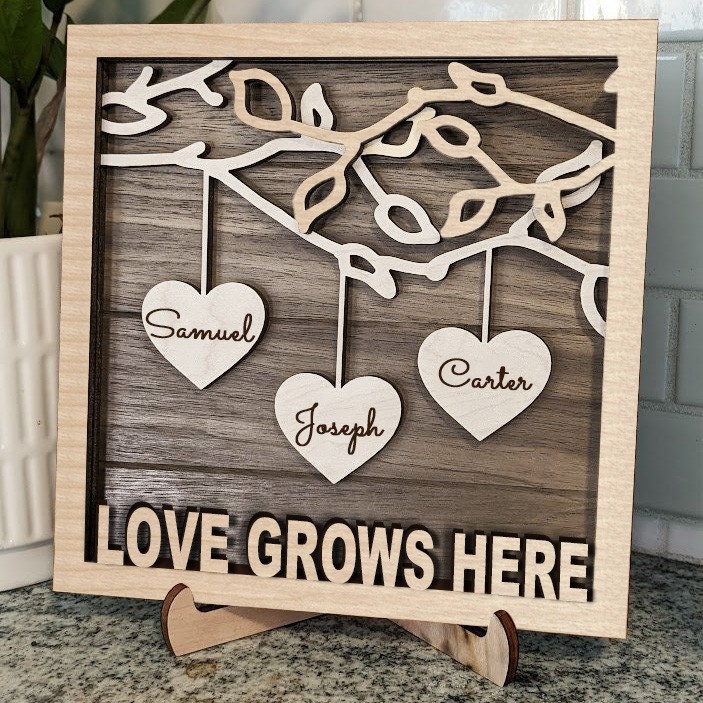 Personalised Love Grows Here Family Tree Name Sign