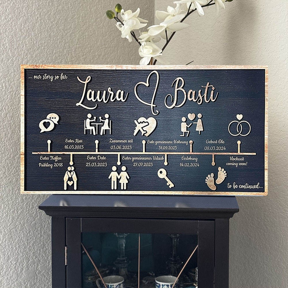 Personalised Love Story Timeline Wood Sign Gifts for Couple Anniversary Gift for Wife Husband