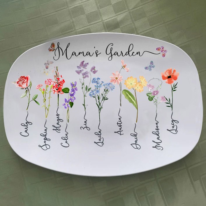 Personalised Mama's Garden Birth Flowers Platter Custom Mother's Day Gifts for Mum Gift for Grandma Nana