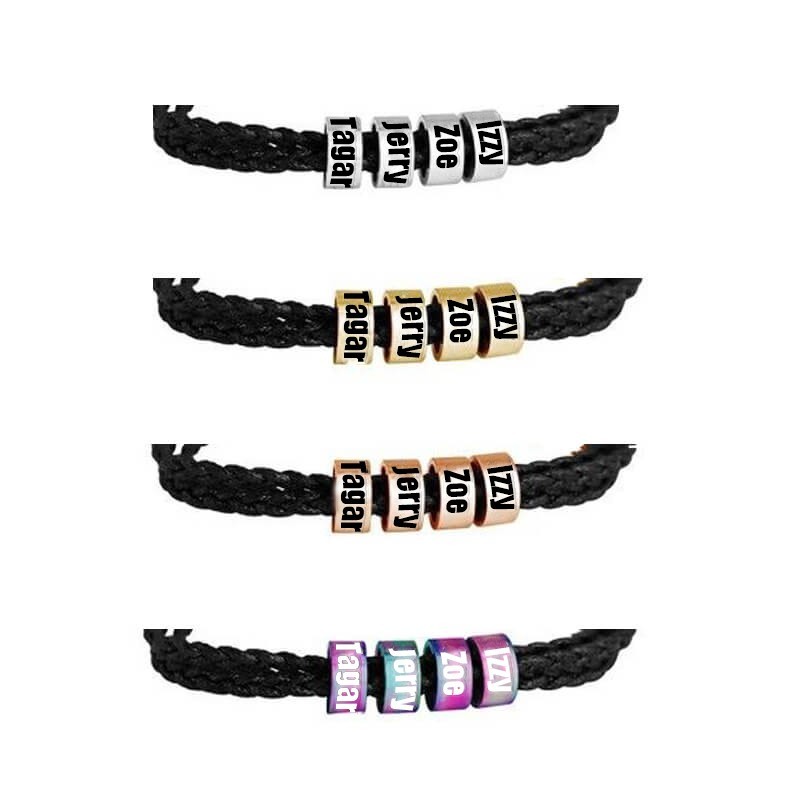 Personalised Men Braided Leather Bracelet With Engraved Names Beads Unique Father's Day Gift Ideas