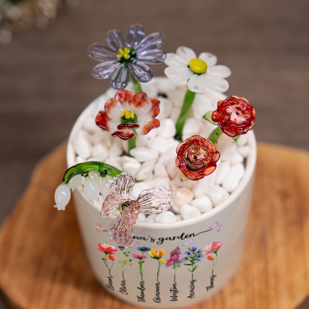 Personalised Mini Glass Birth Month Flower Gifts for Mum Grandma Christmas Gift