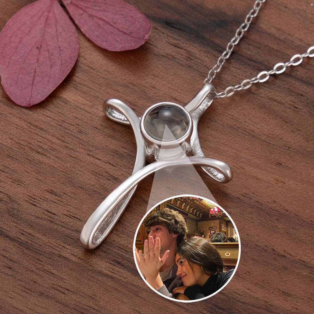 Personalised Mobius Cross Pendant Photo Projection Necklace Anniversary Day Gifts Unique Couple Gift For Her