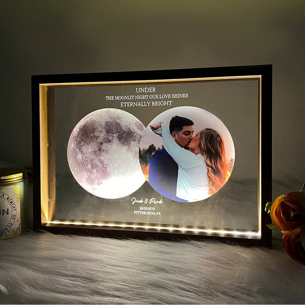 Personalised Moon Phase Frame Night Light with Photo Keepsake Gifts for Couple Anniversary Gift for Him Her Valentine's Day Gifts
