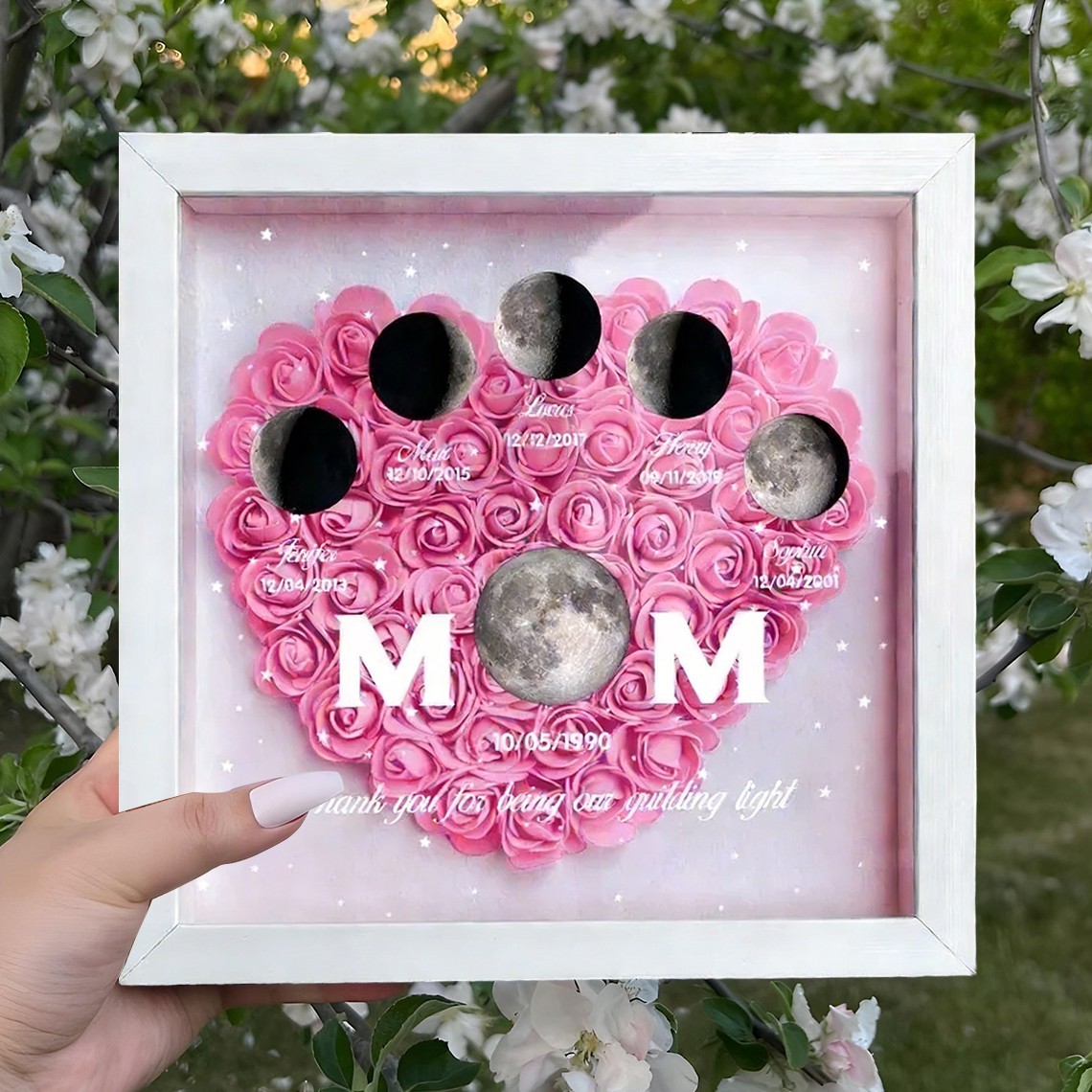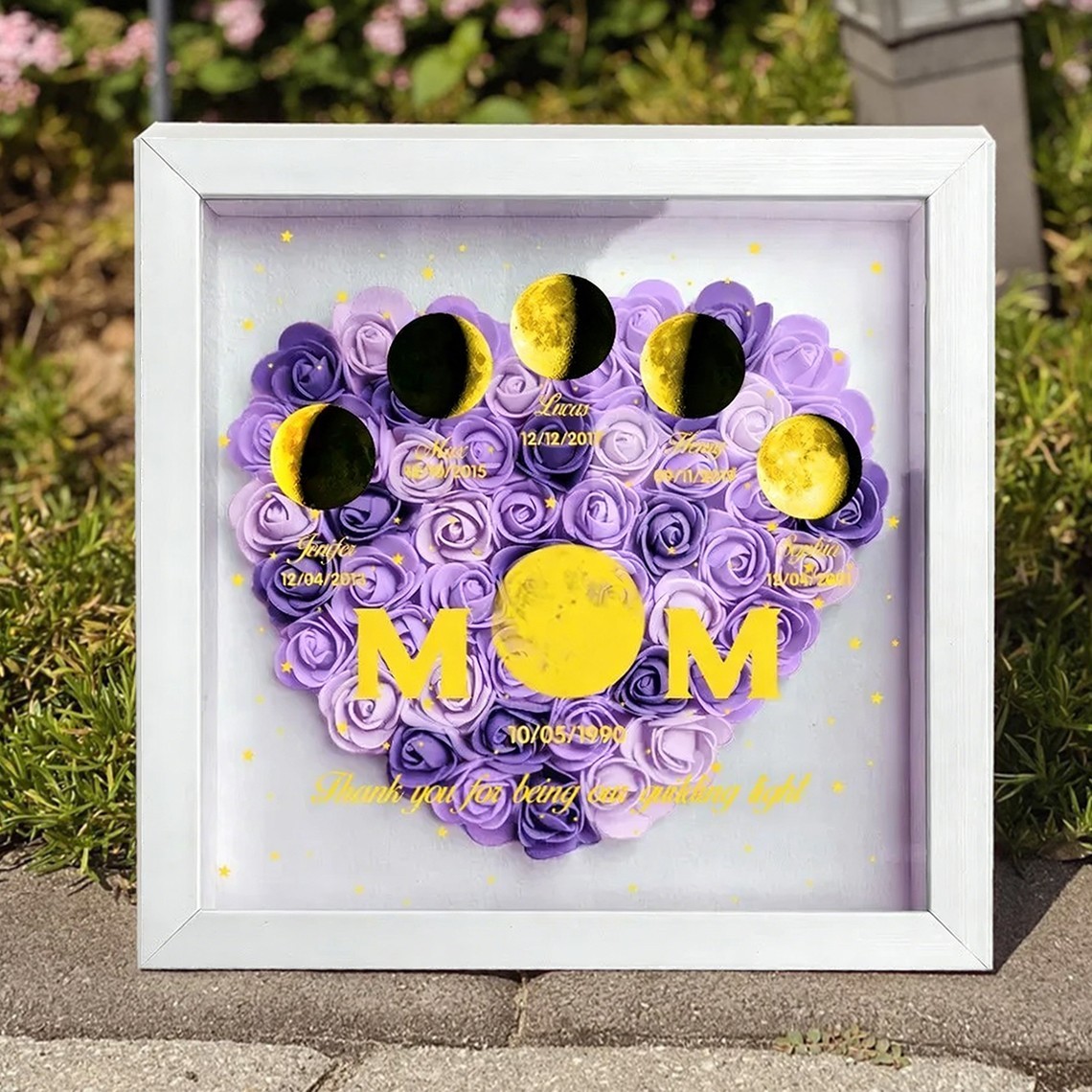 Personalised Mum Flower Shadow Box with Moon Phase Print Keepsake Gifts for Mum Grandma Mother's Day Gift