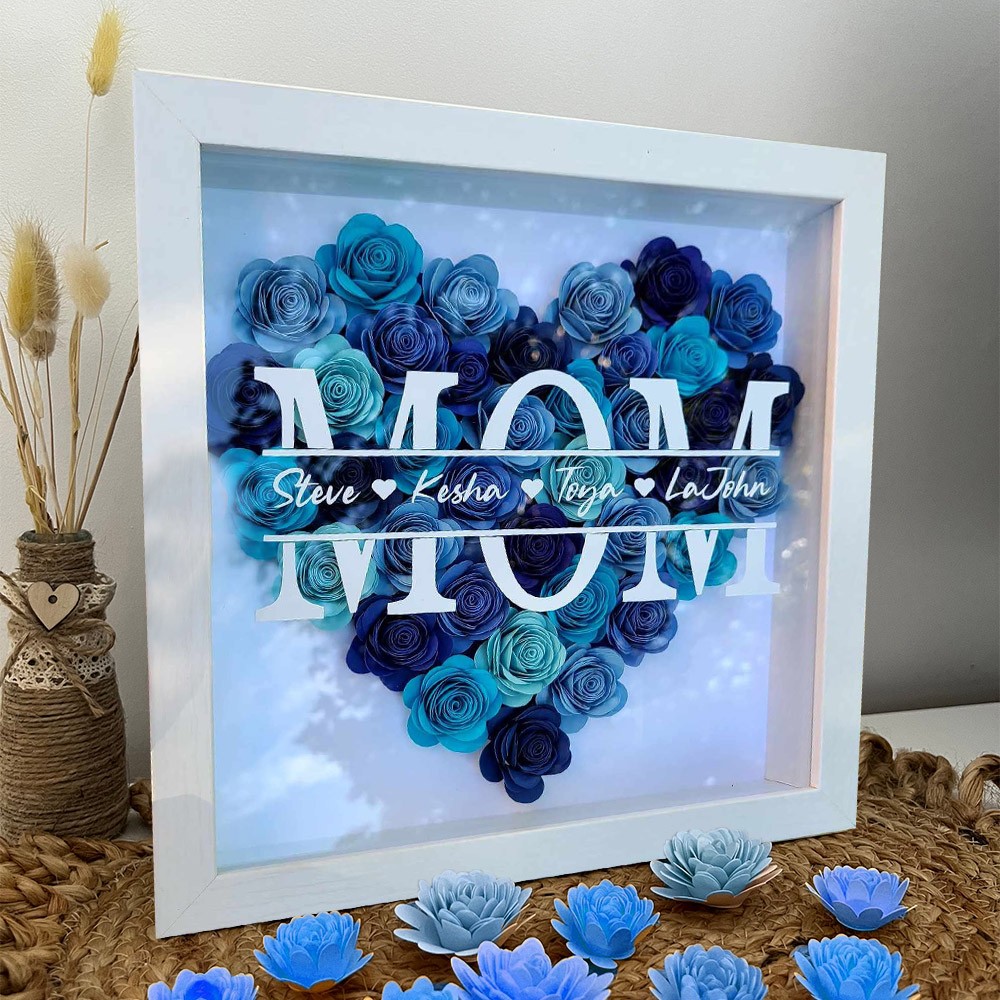 Personalised Mum Heart Shaped Monogram Flower Shadow Box