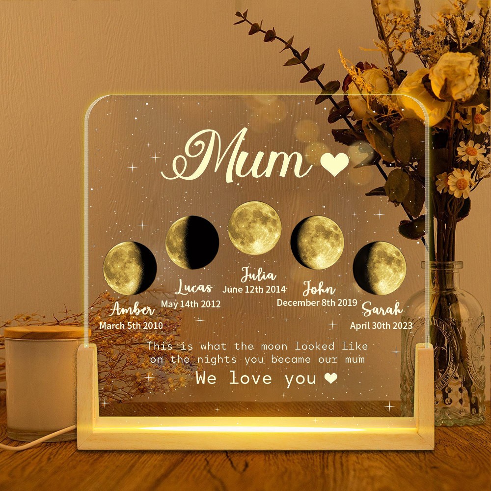 Personalised Mum Moon Phase Print Night Light With Kids Names Custom Lunar By Date Gifts For Mum Mother’s Day Gift Unique New Mum Pregnancy Gift