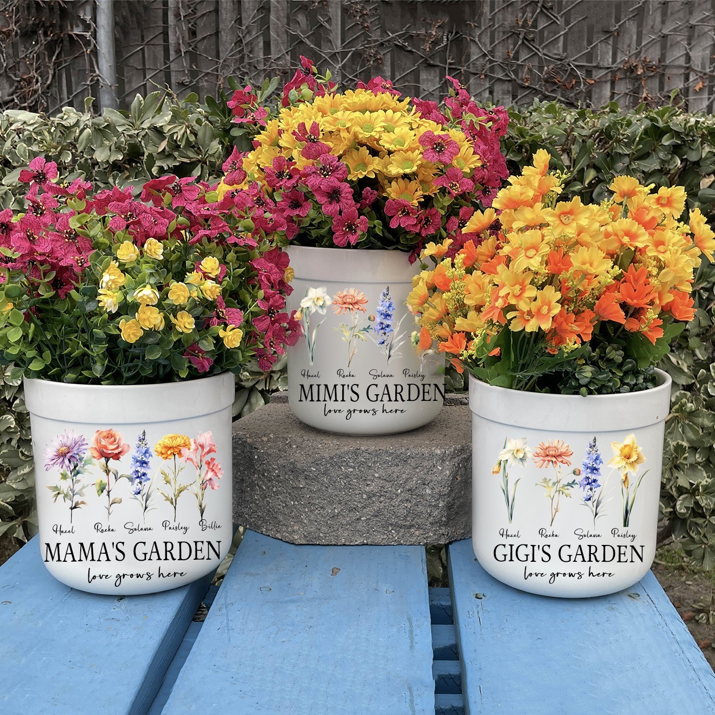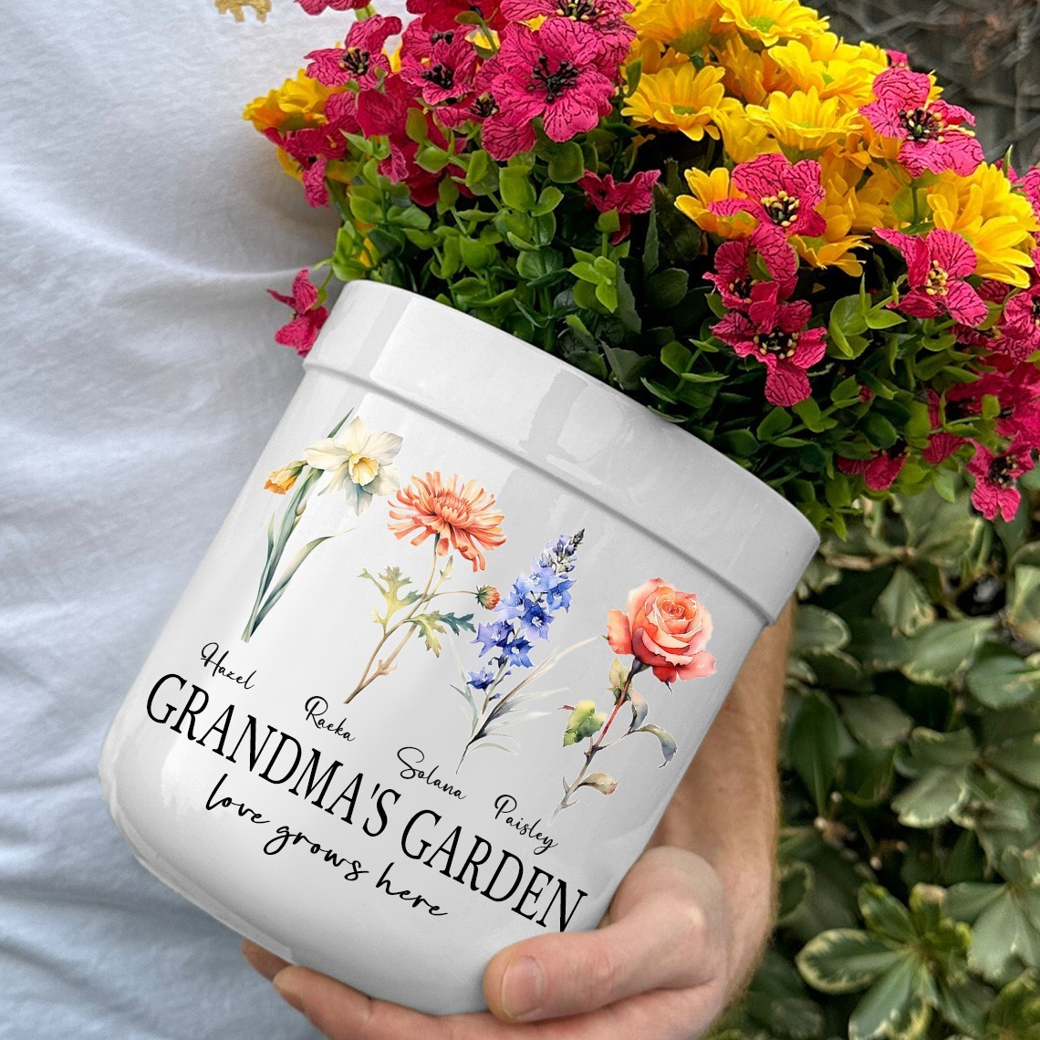 Personalised Mum's Garden Birth Month Flower Plant Pot with Kids Names Unique Gifts for Mum Grandma Mother's Day Gift