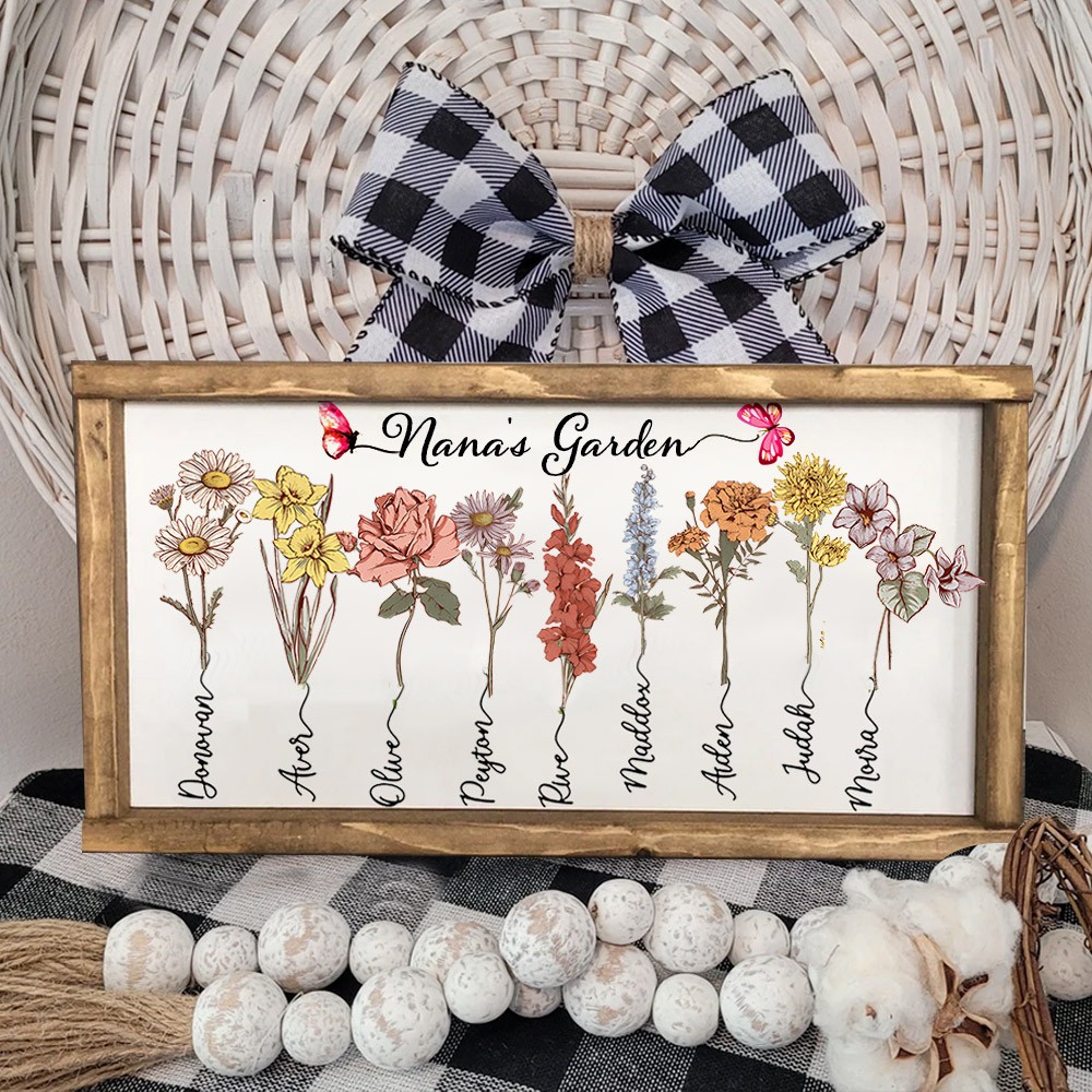 Personalised Mum's Garden Birth Month Flowers Wooden Frame Sign Gift For Mum Grandma Mother's Day Gift