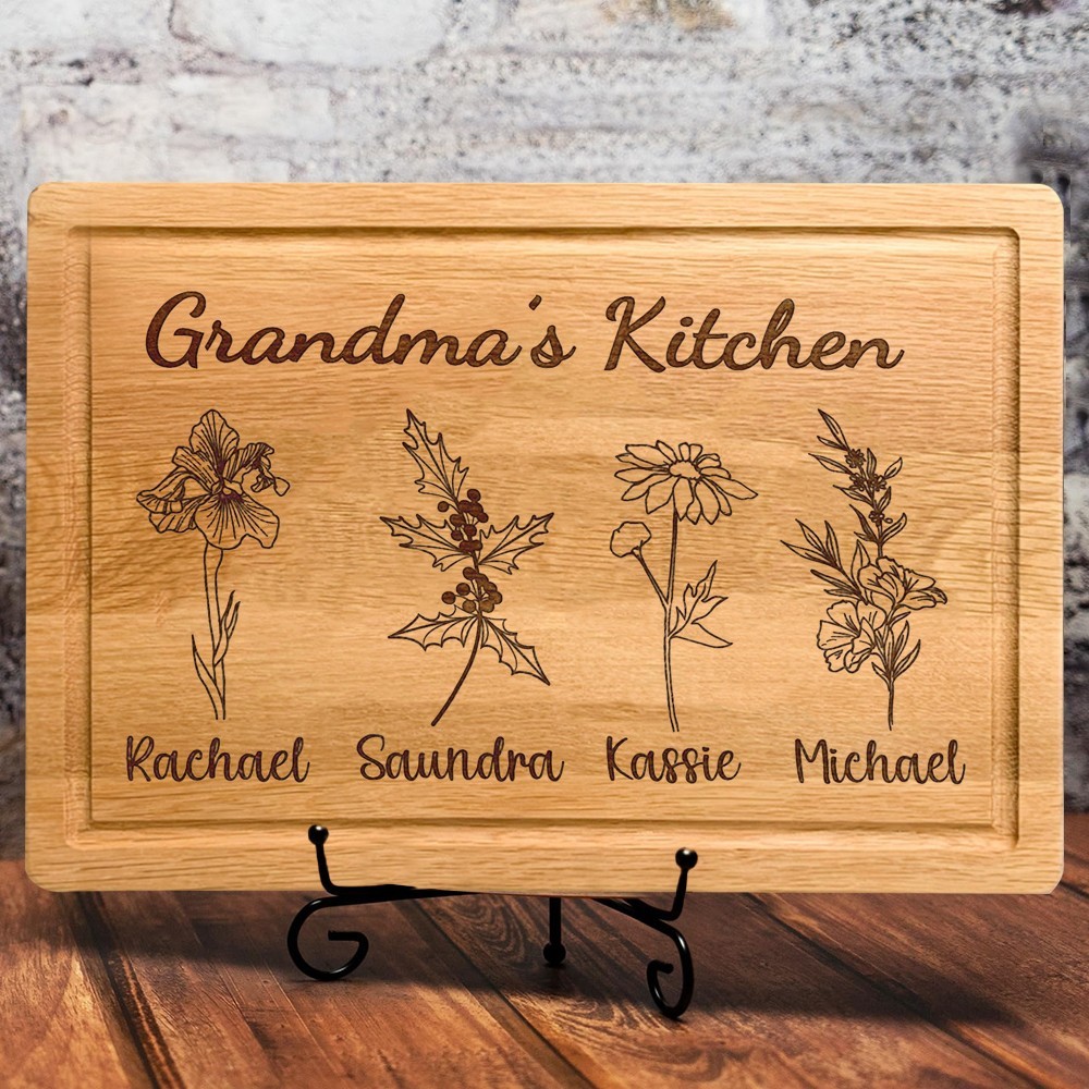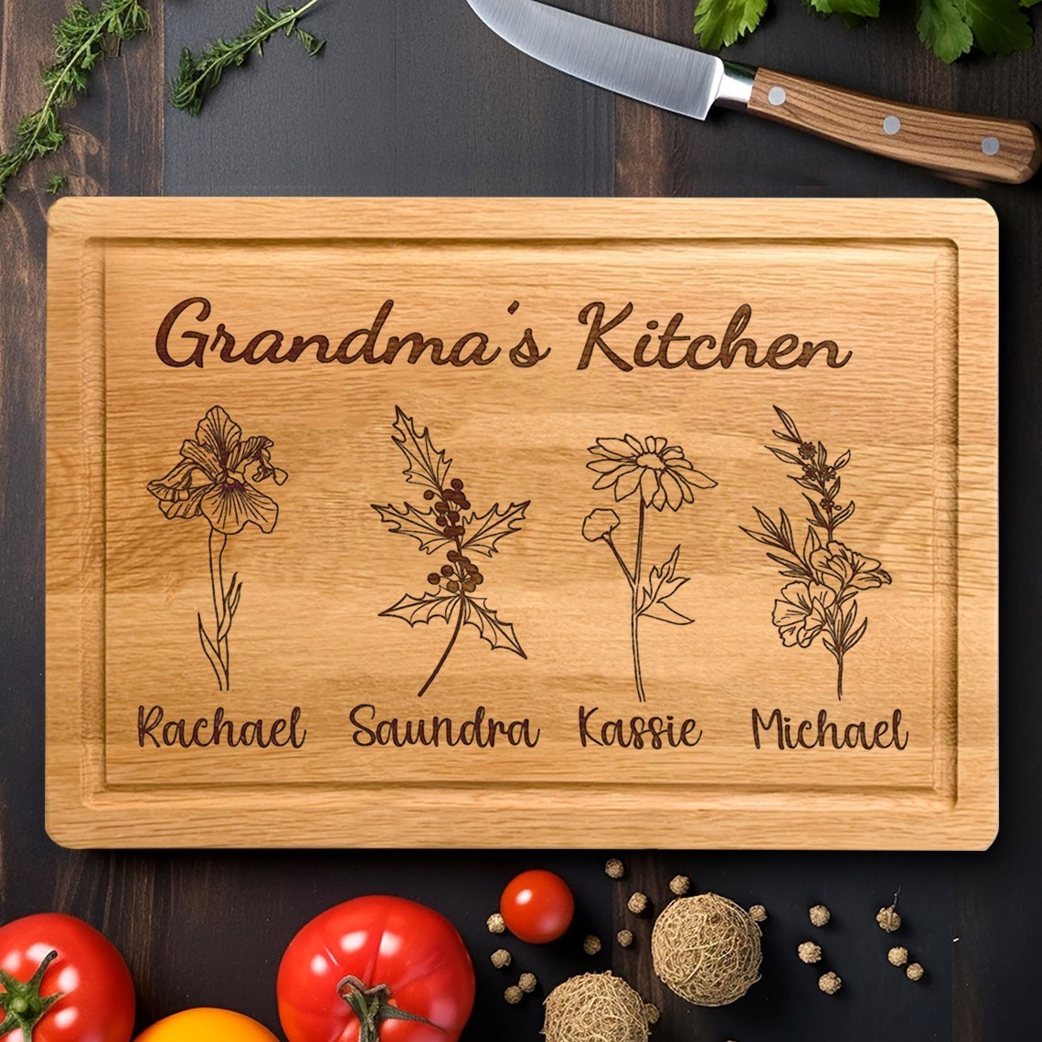 Personalised Mum's Kitchen Birth Month Flower Cutting Board with Names Unique Gifts For Mum Grandma Christmas Gift