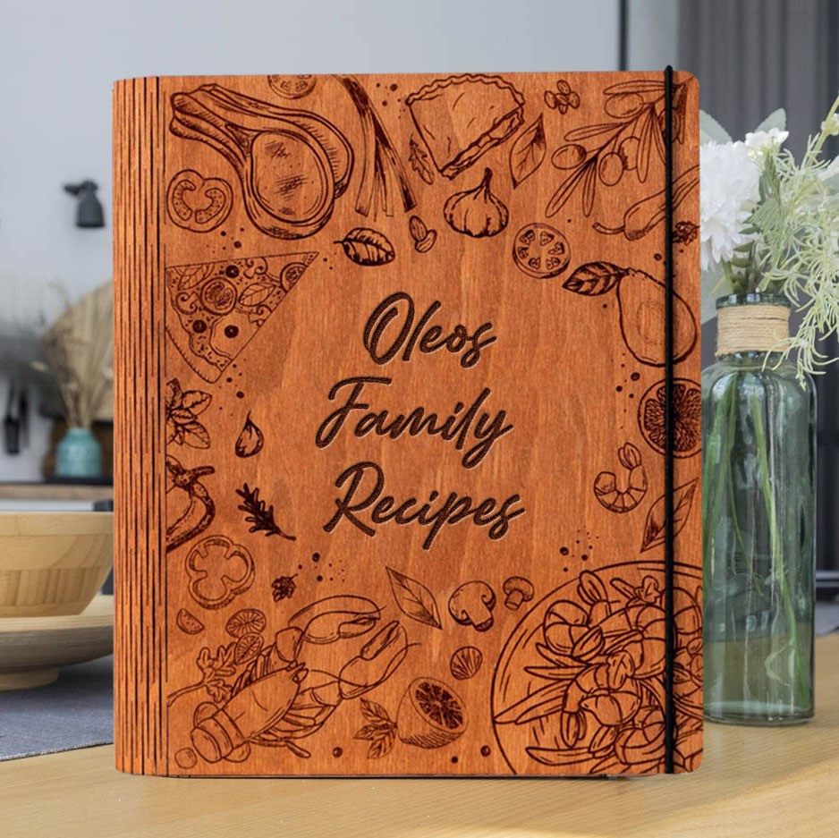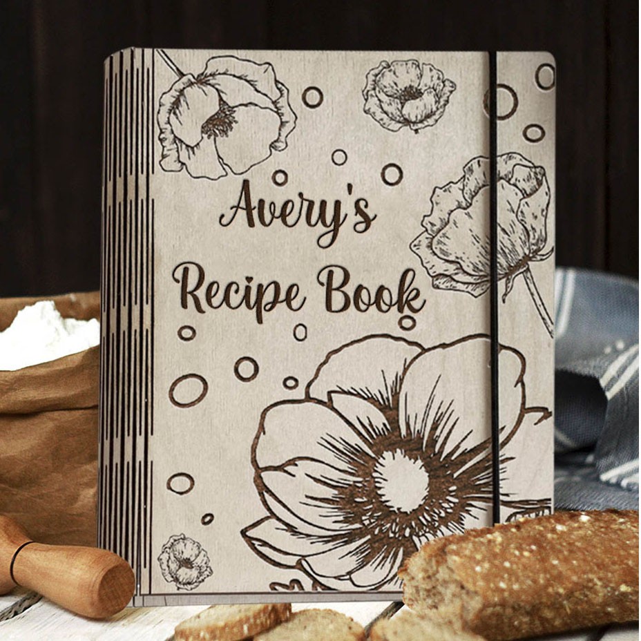 Personalised Mum's Wooden Recipe Book Blank Binder Custom Engraved Journal for Mum Grandma Christmas Gifts