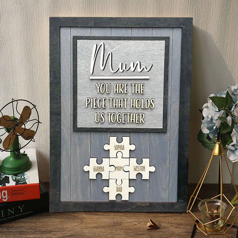 Personalised Mum with Kids Names Wooden Puzzle Frame