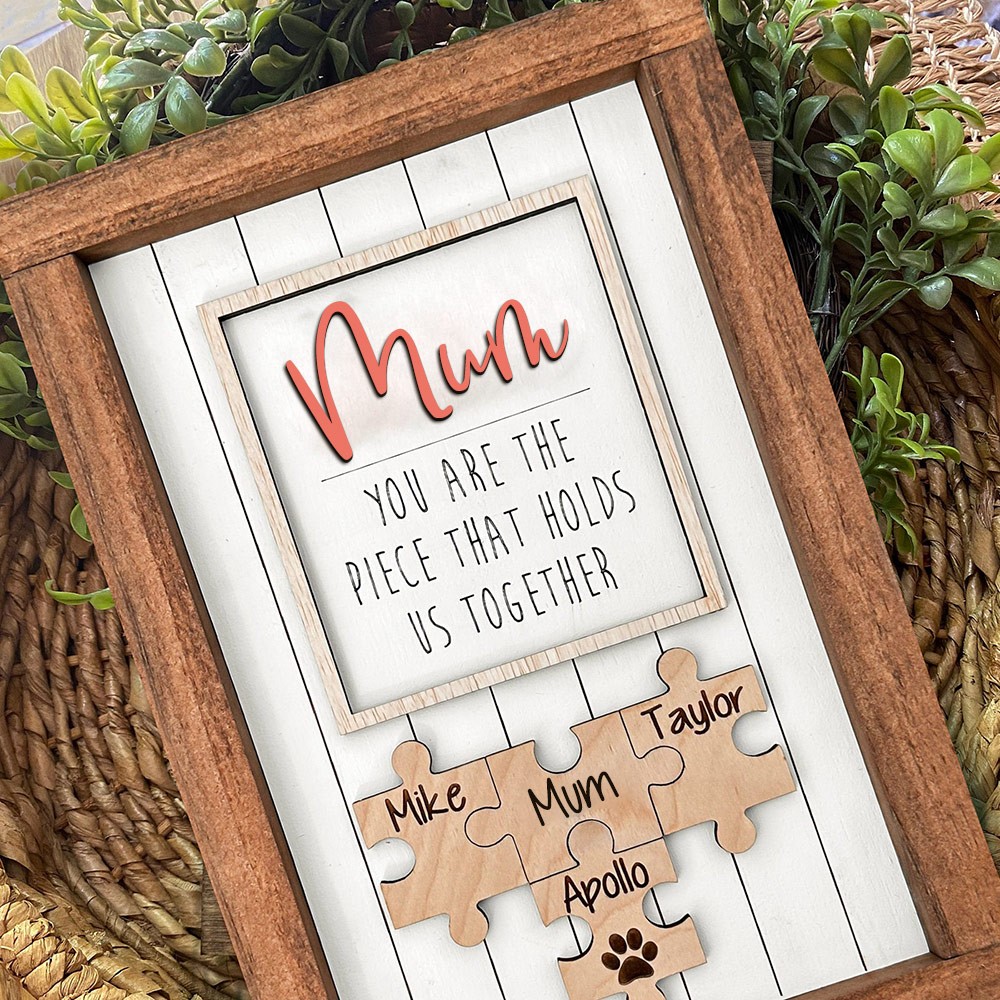 Personalised Mum You Are The Piece That Hold Us Together Wooden Engraved Puzzle Sign with Kids Names for Mum Mother's Day Gift